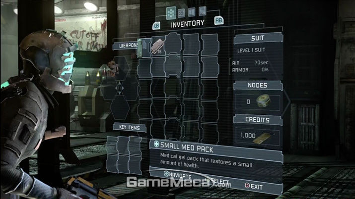 ▲ 인벤토리 인터페이스로도 내러티브를 살린 '데드 스페이스' (사진출처: 게임 내 영상 갈무리)