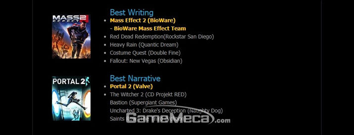 ▲ '게임 개발자의 선택' 시상식은 '최고 각본 상'을 2012년 '최고 내러티브 상'으로 대체했다 (사진출처: 게임 개발자의 선택 공식 홈페이지)